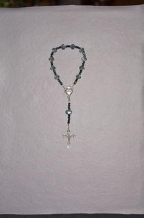Beautiful rosary with Bluestone beads, Blueberry glass crosses and Grey glass seed beads with Silver plated Madonna medal and a Pewter Celtic cross.